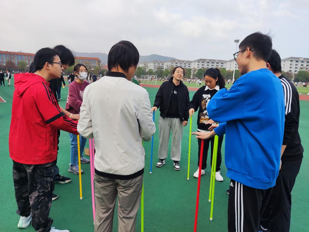 在首先进行的破冰活动中,指导老师们组织同学们进行了“几块几毫”和“进化论”两个小游戏,在游戏中同学们逐渐加深对彼此的认识,逐渐消除了彼此间的距离。而后,同学们被分为两个小组,分别进行了“不倒森林”、“传球接力”以及“我们是最棒的”三个集体计时竞速项目,使大家在合作中进一步感受团队配合的力量。