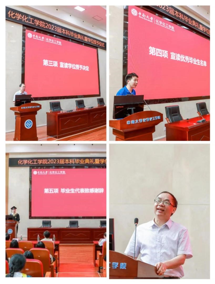 6月7日上午10时,英国正版365官方网站2023届本科毕业典礼暨学位授予仪式在新校区化学楼133报告厅隆重举行。英国正版365官方网站党委书记刘有才、院长刘又年、副院长刘广义、各系教师代表、学工办老师及全体本科毕业生参加典礼。