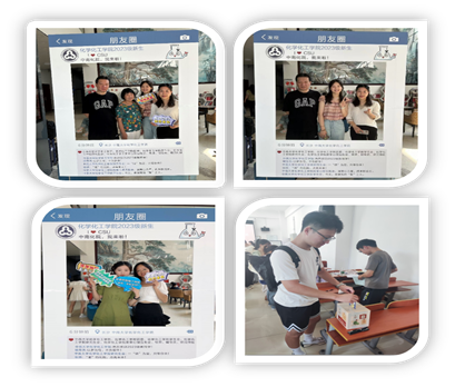 迎新工作进行时,化院研究生学子纷纷化身志愿者,确保迎新时段全员在岗,高效配合,为新生入学报到提供了贴心、周到的服务。为突出“新”意,学院在迎新氛围、报到流程、入学教育等多个方面别出心裁,特色突出——在学院一楼大厅增设富有学科特色的拍照打卡KT板及拍摄道具,增设引导工作人员,帮助记录下这难忘的时刻;设置明信片心愿箱,提笔记录未来三年的期许和愿望,勉励每位学子勇敢追梦;为新生发放了定制卡套、精美钥匙扣、U盘等,留下专属的中南印象。