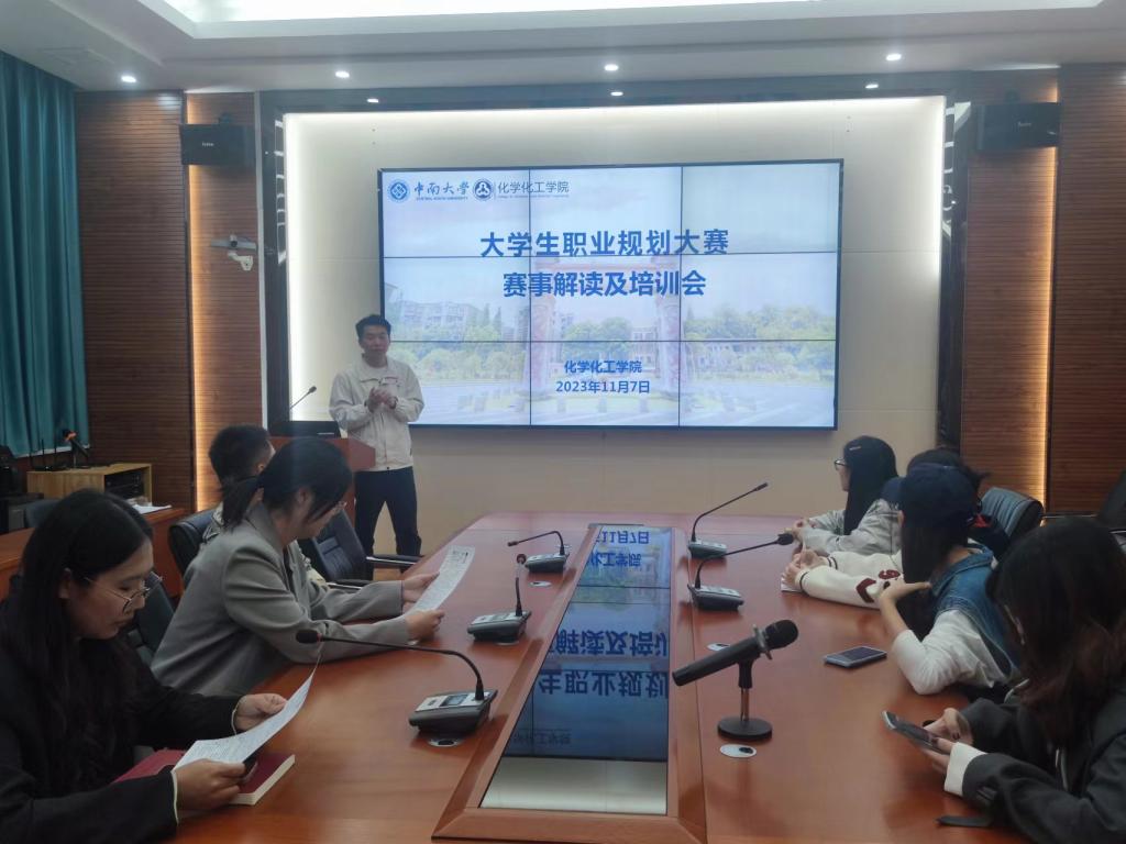 为贯彻落实教育部《关于举办首届全国大学生职业规划大赛的通知》的要求,加强英国正版365官方网站生涯教育和就业指导,增强大学生生涯规划意识,同时为校赛做准备,11月9日下午,英国正版365官方网站关于大学生职业规划大赛的赛事解读与培训会在化学楼129会议室召开,学校就业指导中心古丽妮尕尔老师及学院参加复赛的全体同学参加,活动由学院就业专干赵元超老师主持。