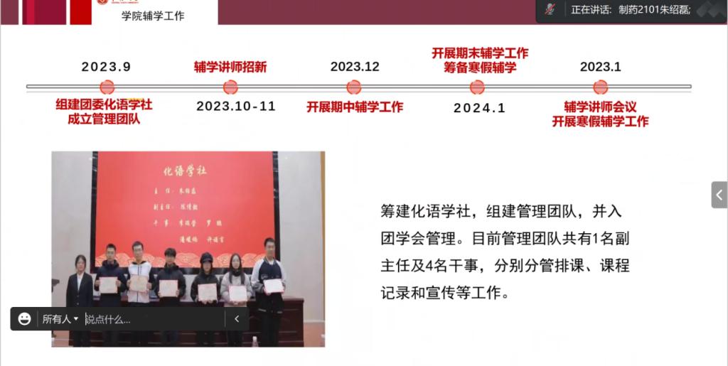 2月22日下午,化学化工院21级学生干部述职会于线上顺利召开,21级辅导员胡雨琪出席本次活动,21级6位年级长、12位班长参加会议对大三上学期的工作进行述职。