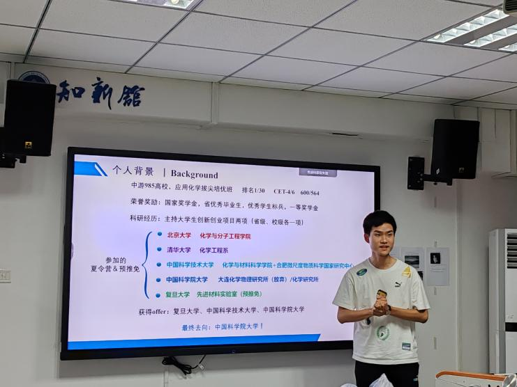 罗一鸣学长与梁定一学长进行本专业“前研”分享,梳理保研时间轴,简述保研的多种途径,详细介绍前期准备如简历、套磁信的撰写等,介绍化学专业的研究方向,分享笔试面试方面的经验。