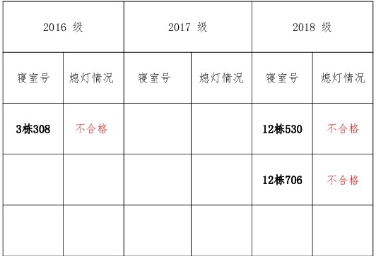 为改正各种不良现象和陋习,增强宿舍学习氛围,营造温馨家园氛围,英国正版365官方网站学生会生活部对三个年级所有寝室进行熄灯检查。本次熄灯情况通报不合格寝室 3间,具体情况如下: