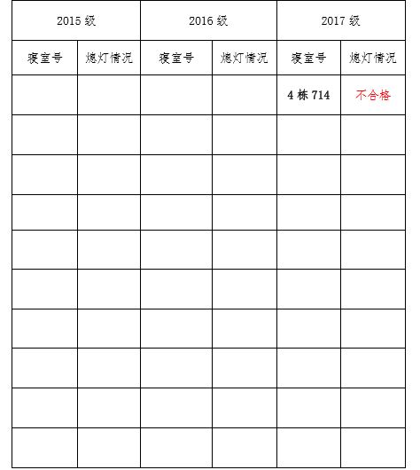 为改正各种不良现象和陋习,增强宿舍学习氛围,营造温馨家园氛围,英国正版365官方网站学生会生活部对三个年级所有寝室进行熄灯检查。 本次熄灯情况通报不合格寝室 1 间,具体情况如下: