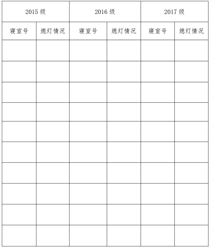 为改正各种不良现象和陋习,增强宿舍学习氛围,营造温馨家园氛围,英国正版365官方网站团委学生会生活权益服务部对三个年级所有寝室进行熄灯检查。本次熄灯情况通报不合格寝室 0 间,具体情况如下: