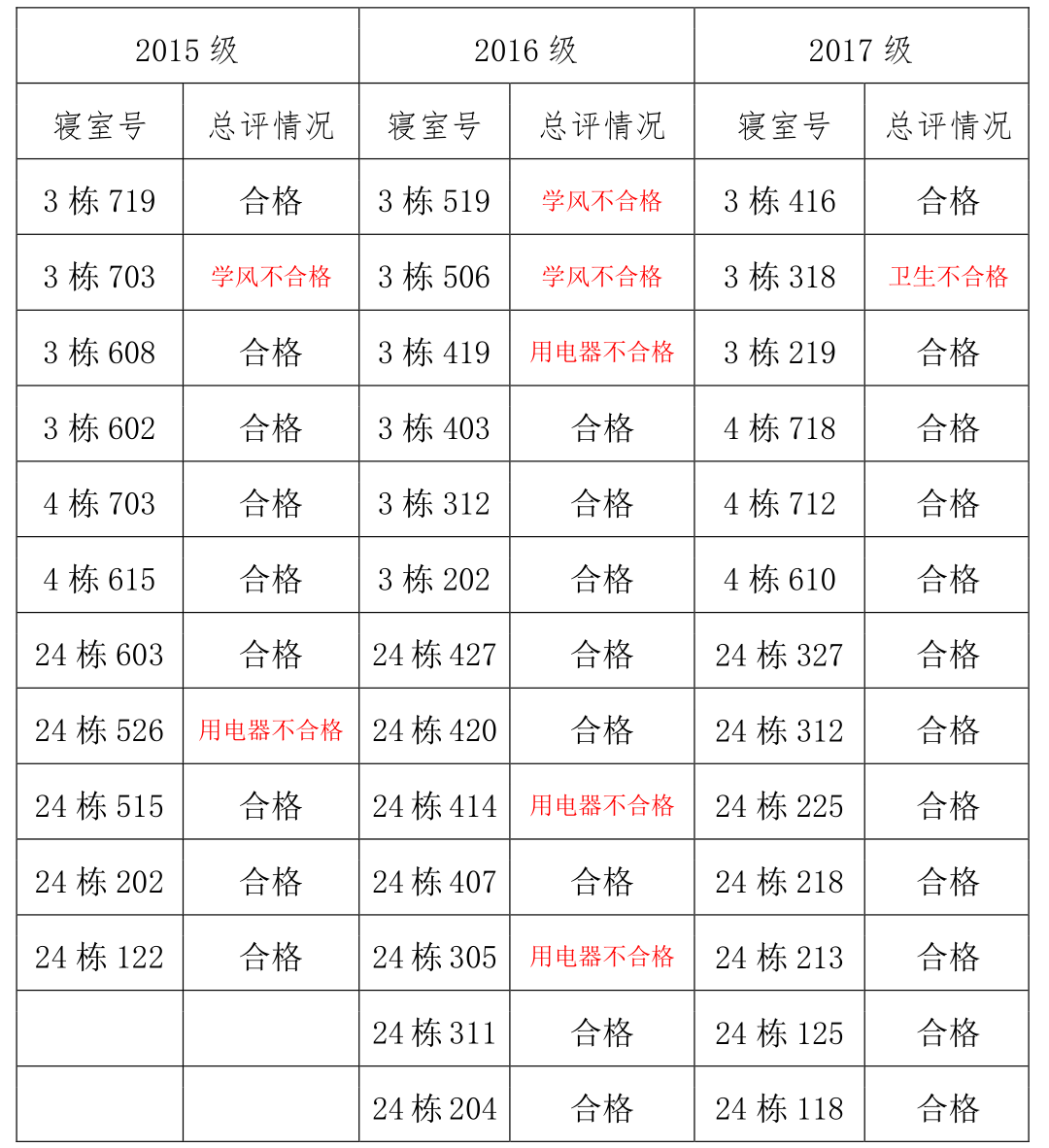 【查寝通报】英国正版365官方网站第三周查寝通报