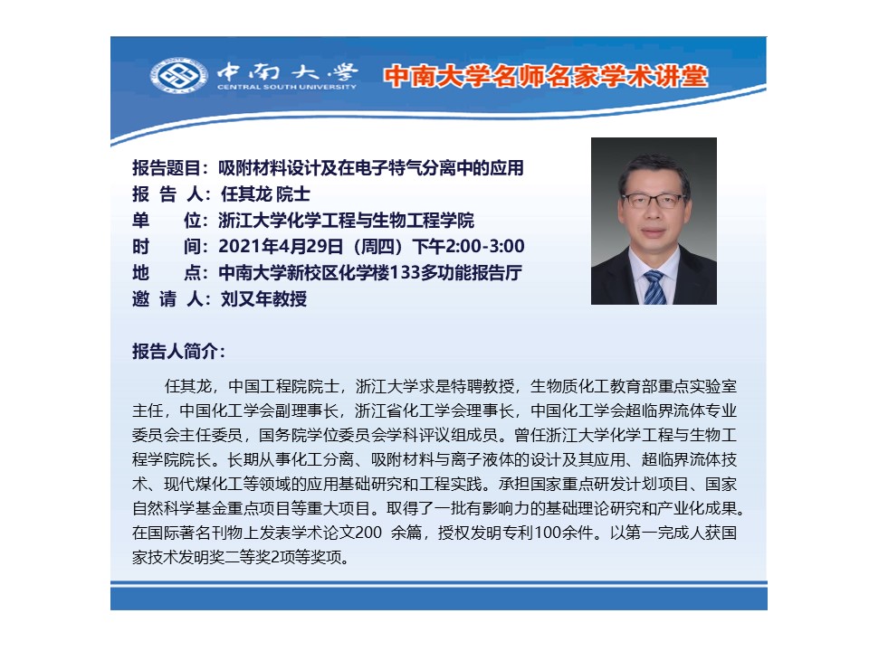 任其龙院士报告:吸附材料设计及在电子特气分离中的应用