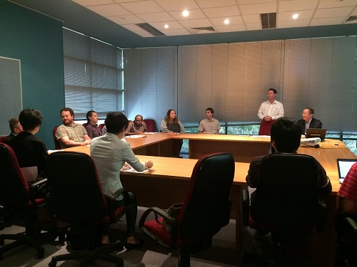 在阿德莱德大学环境研究所的水研究中心,代表团访问了中心主任Justin Brookes副教授。Justin Brookes主任首先介绍了自己主要的研究领域 (饮用水源水水质,河流、湖泊生态学)、关于使用生物过滤处理再生水的科研项目,以及与中国高校、科研院所的国际合作概况。杨兆光教授代表中南大学环境与水资源研究中心介绍了中心的科学研究概况, 同时代表团成员也分别介绍了各自的研究方向和有兴趣的科研领域。Justin Brookes主任也提到他之前与中国科学院南京湖泊与地理研究所有着良好的国际合作关系,对中国的蓝藻水华、蓝藻毒素及毒素降解研究状况有一定了解。
