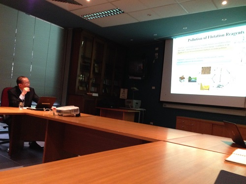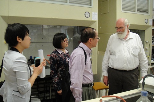 代表团最后一站访问的是莫道克大学,化学与数学科学学院院长Peter May教授在其办公室会见了代表团。杨兆光教授向Peter May教授介绍了中心目前涉及重金属及矿冶药剂污染方面的研究工作。Peter May教授也向代表团介绍了其研究团队的科研工作, 一方面集中在研究金属离子与其它物质如何在水中发生反应,另一方面则涉及湿法冶金和物理化学研究领域。令人十分敬佩的是,Peter May教授在近三十多年的时间里一直致力于一个频繁引用模型软件包JESS (Joint Expert Speciation System) 的开发。 JESS通过使用溶液化学领域现有信息的大型数据库,再结合新的实验测量数据,来解决知识中的重要空白。在JESS软件包的开发过程中,Peter May教授培养了30多位博士生,发表了200多篇高水平研究论文。Peter May教授这种执着的科研精神给代表团留下了深刻的印象。