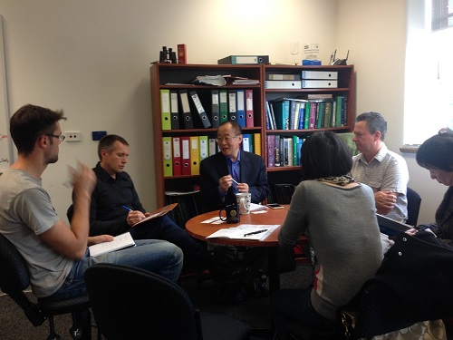 在维多利亚大学访问期间,该校可持续发展与创新研究所 (Institute for Sustainability and Innovation) 主任Stephen Gray教授、工程与科学学院教授/皇家澳大利亚化学会院士John Orbell教授会见了代表团并表示热烈欢迎。Stephen Gray教授代表研究所向代表团介绍了研究所的研究领域、科研成果、产业合作及国际合作现状。同时,杨兆光教授给研究所师生作了专题报告,介绍了中南大学环境与水资源研究中心当前进行的科研项目、感兴趣的科研课题、已取得的科研成果、人员结构及开展国际合作项目的意向。参会人员也就自己感兴趣的学术问题与代表团成员进行了深入探讨与交流,并寻求进一步合作的机会。
