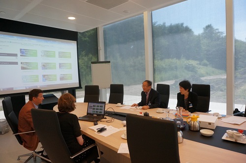 代表团在荷兰访问了著名的KWR水循环研究所。KWR是世界顶尖的水科技研究中心之一,主要致力于城市饮用水安全的防治。在KWR访问期间,研究所的技术开发部主任Marielle van der Zouwen博士代表研究所向代表团介绍了KWR的研究目的、组织结构、研究领域、科研成果及国际合作现状。随后,杨兆光教授给研究所人员作了专题报告,介绍了中南大学环境与水资源研究中心的概况、研究领域、科研课题及开展国际合作项目的意向。Gertjan Zwolsman研究员向代表团详细介绍了由KWR发起建立的国际合作机构watershare,其主要任务在于建立水科技研究领域的全球合作网络,分享科技经验和知识,服务社会组织。目前已有全球范围内的12家科研机构加入该组织。王强博士就环境与水资源环境研究中心在异嗅和纳米污染研究成果进行了报告。最后KWR研究所的材料研究与化学分析实验室主管Annemieke Kolkman博士给代表团详细介绍了KWR目前的研究方向和研究成果。会谈在友好的氛围中进行,参会人员就自己感兴趣的学术问题进行了深入的探讨与交流,双方均表达了进一步合作的愿望。